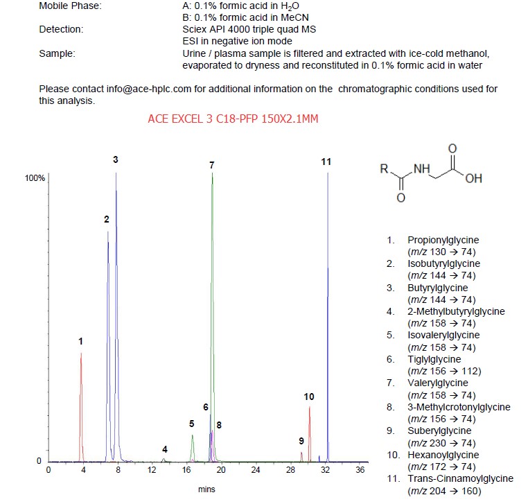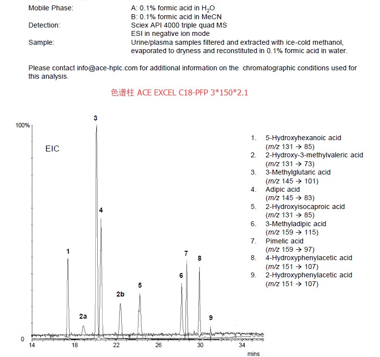 此為在C18末端鍵合PFP(五氟苯基)的特色固定相,可以在維持疏水性的同時(shí)增強(qiáng)極性化合物的保留,比如: