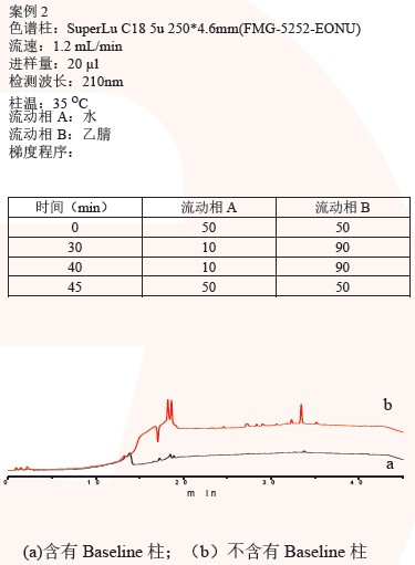 色譜柱可對(duì)流動(dòng)相或系統(tǒng)流路內(nèi)的強(qiáng)保留污染組分起到富集作用,在有機(jī)相比例隨梯度程序變化的過程中而被沖洗出來。