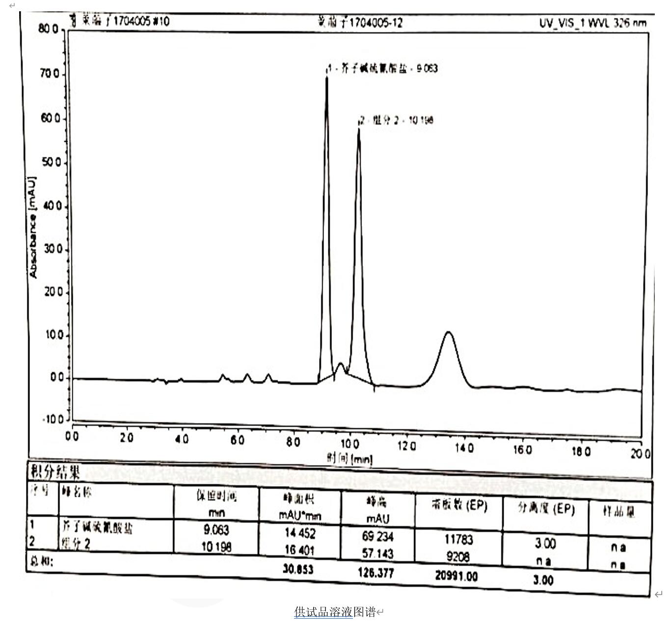 Titank色譜柱對萊菔子中芥子堿硫氰酸鹽的測定