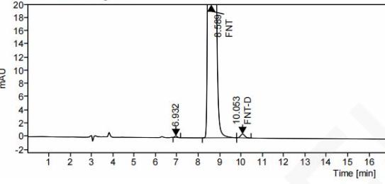 二、非奈利酮手性異構體的反相方法分析(適合原料藥以及制劑劑型的分析研究,反相方法對制劑樣品前處理直接簡化) 方法:自訂 色譜柱:Chiral INC 3u 250*4.6mm (FMG-JY3-I03) 流動相及色譜條件:反相(詳詢銷售代表)