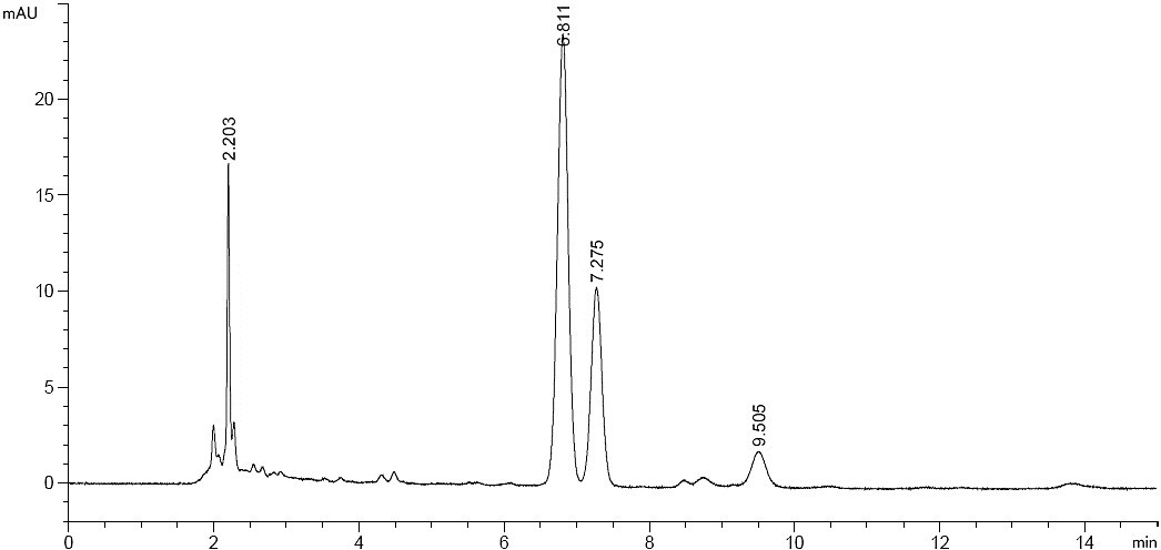 色譜柱:ACE Excel SuperC18 5μm 250×4.6mm(貨號:EXL-1211-2546U)