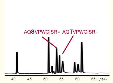 在圖2中,兩種多肽盡管只有一個氨基酸的差異,即絲氨酸對蘇氨酸,但也得到了完全的分離。